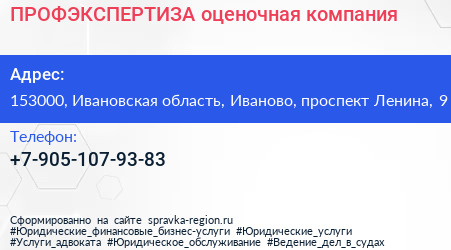 ПРОФЭКСПЕРТИЗА, оценочная компания по адресу 153000, Ивановская область, Иваново, проспект Ленина, 9 в дальнейшем Организация, размещена в следующих категориях: