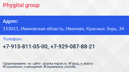 Phygital.group по адресу 153011, Ивановская область, Иваново, Красных Зорь, 34 в дальнейшем Организация, размещена в следующих категориях: