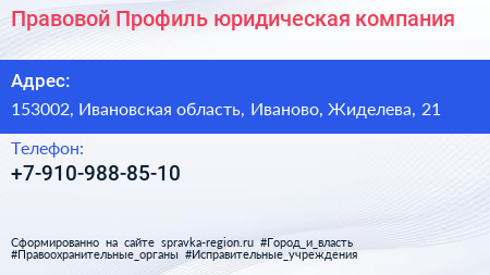 Правовой Профиль, юридическая компания по адресу 153002, Ивановская область, Иваново, Жиделева, 21 в дальнейшем Организация, размещена в следующих категориях: