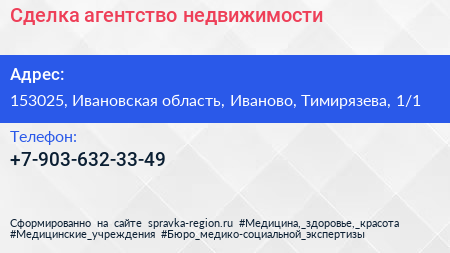 Сделка, агентство недвижимости по адресу 153025, Ивановская область, Иваново, Тимирязева, 1/1 в дальнейшем Организация, размещена в следующих категориях: