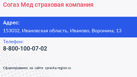 Согаз-Мед, страховая компания по адресу 153032, Ивановская область, Иваново, Воронина, 13 в дальнейшем Организация, размещена в следующих категориях: