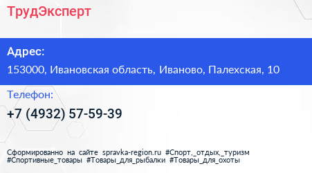 ТрудЭксперт по адресу 153000, Ивановская область, Иваново, Палехская, 10 в дальнейшем Организация, размещена в следующих категориях: