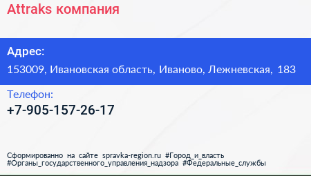 Attraks, компания по адресу 153009, Ивановская область, Иваново, Лежневская, 183 в дальнейшем Организация, размещена в следующих категориях: