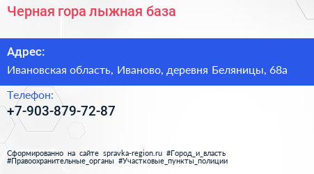 Черная гора, лыжная база по адресу Ивановская область, Иваново, деревня Беляницы, 68а в дальнейшем Организация, размещена в следующих категориях: