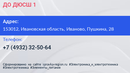 ДО ДЮСШ №1 по адресу 153012, Ивановская область, Иваново, Пушкина, 28 в дальнейшем Организация, размещена в следующих категориях:
