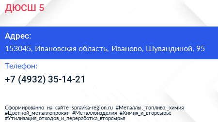 ДЮСШ №5 по адресу 153045, Ивановская область, Иваново, Шувандиной, 95 в дальнейшем Организация, размещена в следующих категориях: