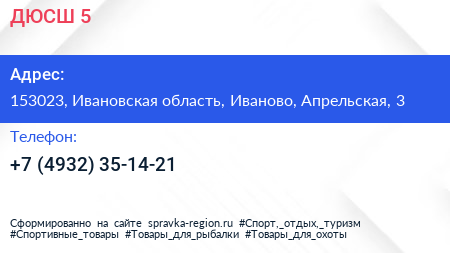 ДЮСШ №5 по адресу 153023, Ивановская область, Иваново, Апрельская, 3 в дальнейшем Организация, размещена в следующих категориях:
