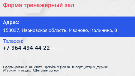 Форма, тренажерный зал по адресу 153037, Ивановская область, Иваново, Калинина, 8 в дальнейшем Организация, размещена в следующих категориях: