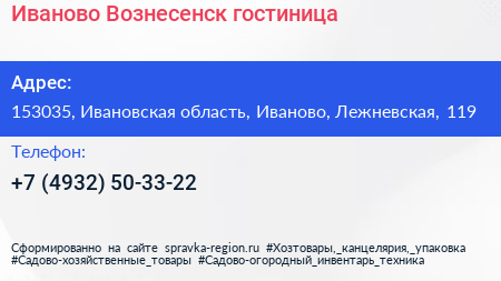 Иваново-Вознесенск, гостиница по адресу 153035, Ивановская область, Иваново, Лежневская, 119 в дальнейшем Организация, размещена в следующих категориях: