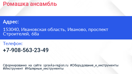 Ромашка, ансамбль по адресу 153040, Ивановская область, Иваново, проспект Строителей, 68а в дальнейшем Организация, размещена в следующих категориях: