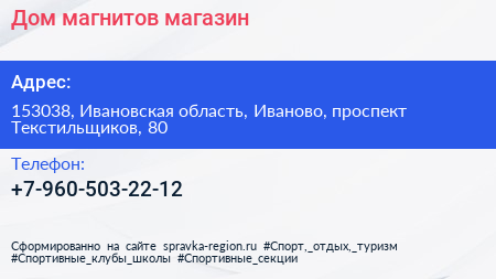 Дом магнитов, магазин по адресу 153038, Ивановская область, Иваново, проспект Текстильщиков, 80 в дальнейшем Организация, размещена в следующих категориях: