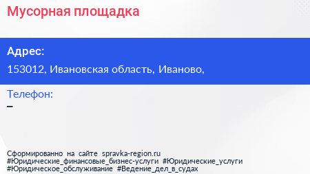 Мусорная площадка по адресу 153012, Ивановская область, Иваново, в дальнейшем Организация, размещена в следующих категориях: