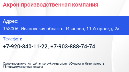 Акрон, производственная компания по адресу 153006, Ивановская область, Иваново, 11-й проезд, 2а в дальнейшем Организация, размещена в следующих категориях: