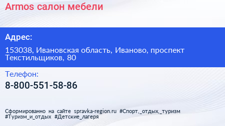 Armos, салон мебели по адресу 153038, Ивановская область, Иваново, проспект Текстильщиков, 80 в дальнейшем Организация, размещена в следующих категориях: