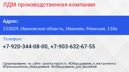ЛДМ, производственная компания по адресу 153029, Ивановская область, Иваново, Минская, 118а в дальнейшем Организация, размещена в следующих категориях:
