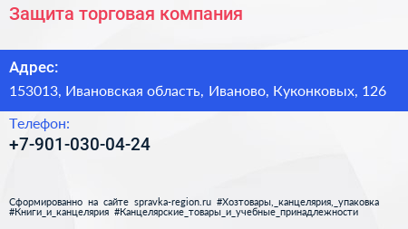 Защита, торговая компания по адресу 153013, Ивановская область, Иваново, Куконковых, 126 в дальнейшем Организация, размещена в следующих категориях:
