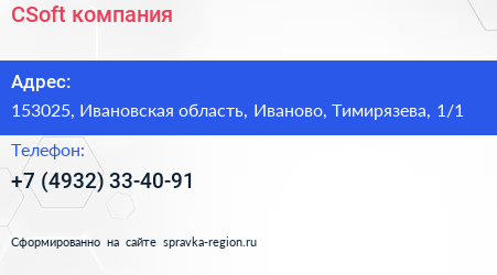 CSoft, компания по адресу 153025, Ивановская область, Иваново, Тимирязева, 1/1 в дальнейшем Организация, размещена в следующих категориях: