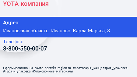 YOTA, компания по адресу Ивановская область, Иваново, Карла Маркса, 3 в дальнейшем Организация, размещена в следующих категориях: