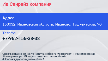 Ив-Санрайз, компания по адресу 153032, Ивановская область, Иваново, Ташкентская, 90 в дальнейшем Организация, размещена в следующих категориях: