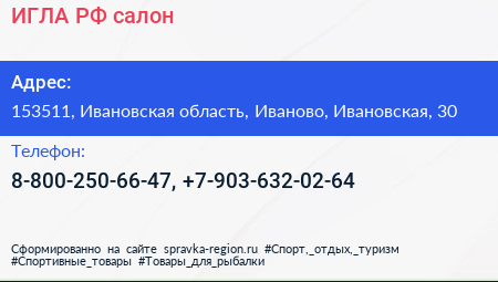 ИГЛА.РФ, салон по адресу 153511, Ивановская область, Иваново, Ивановская, 30 в дальнейшем Организация, размещена в следующих категориях: