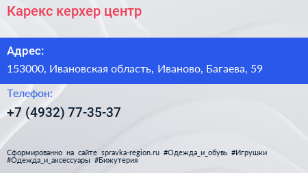 Карекс, керхер-центр по адресу 153000, Ивановская область, Иваново, Багаева, 59 в дальнейшем Организация, размещена в следующих категориях: