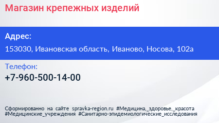 Магазин крепежных изделий по адресу 153030, Ивановская область, Иваново, Носова, 102а в дальнейшем Организация, размещена в следующих категориях:
