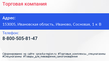 Торговая компания по адресу 153005, Ивановская область, Иваново, Сосновая, 1 к В в дальнейшем Организация, размещена в следующих категориях: