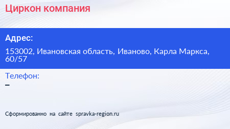 Циркон, компания по адресу 153002, Ивановская область, Иваново, Карла Маркса, 60/57 в дальнейшем Организация, размещена в следующих категориях: