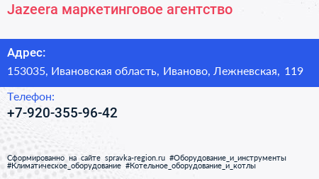 Jazeera, маркетинговое агентство по адресу 153035, Ивановская область, Иваново, Лежневская, 119 в дальнейшем Организация, размещена в следующих категориях: