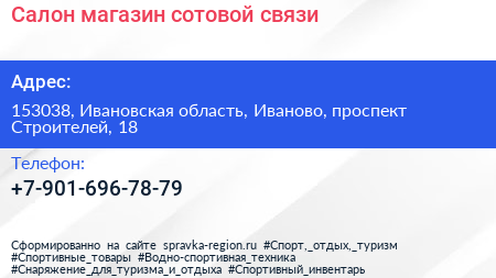 Салон-магазин сотовой связи по адресу 153038, Ивановская область, Иваново, проспект Строителей, 18 в дальнейшем Организация, размещена в следующих категориях: