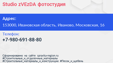 Studio zVEzDA, фотостудия по адресу 153000, Ивановская область, Иваново, Московская, 16 в дальнейшем Организация, размещена в следующих категориях: