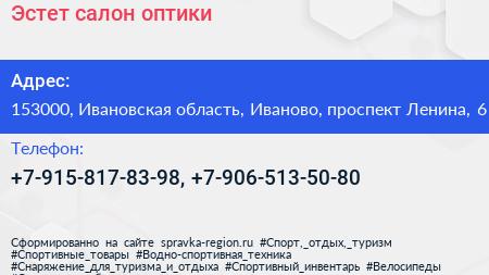 Эстет, салон оптики по адресу 153000, Ивановская область, Иваново, проспект Ленина, 6 в дальнейшем Организация, размещена в следующих категориях: