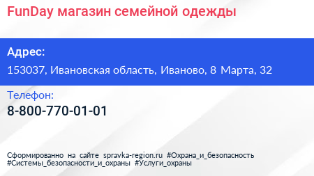 FunDay, магазин семейной одежды по адресу 153037, Ивановская область, Иваново, 8 Марта, 32 в дальнейшем Организация, размещена в следующих категориях:
