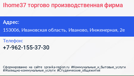 Ihome37, торгово-производственная фирма по адресу 153006, Ивановская область, Иваново, Инженерная, 2е в дальнейшем Организация, размещена в следующих категориях: