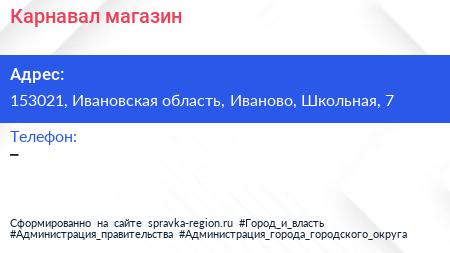 Карнавал, магазин по адресу 153021, Ивановская область, Иваново, Школьная, 7 в дальнейшем Организация, размещена в следующих категориях: