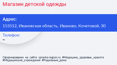 Магазин детской одежды по адресу 153512, Ивановская область, Иваново, Кочетовой, 30 в дальнейшем Организация, размещена в следующих категориях:
