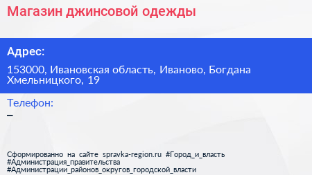 Магазин джинсовой одежды по адресу 153000, Ивановская область, Иваново, Богдана Хмельницкого, 19 в дальнейшем Организация, размещена в следующих категориях: