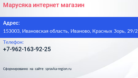 Марусяка, интернет-магазин по адресу 153003, Ивановская область, Иваново, Красных Зорь, 29/2 в дальнейшем Организация, размещена в следующих категориях: