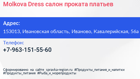 Molkova Dress, салон проката платьев по адресу 153013, Ивановская область, Иваново, Кавалерийская, 56а в дальнейшем Организация, размещена в следующих категориях: