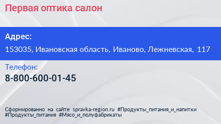 Первая оптика, салон по адресу 153035, Ивановская область, Иваново, Лежневская, 117 в дальнейшем Организация, размещена в следующих категориях: