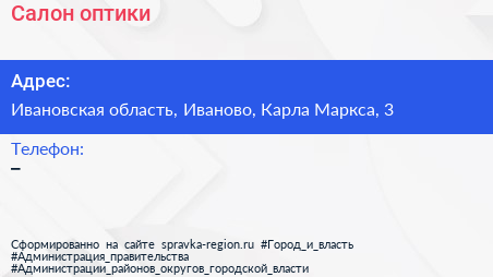 Салон оптики по адресу Ивановская область, Иваново, Карла Маркса, 3 в дальнейшем Организация, размещена в следующих категориях: