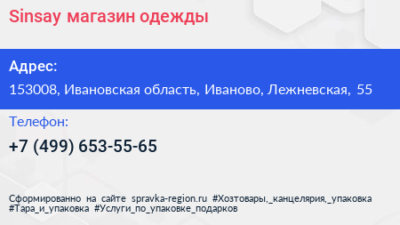 Sinsay, магазин одежды по адресу 153008, Ивановская область, Иваново, Лежневская, 55 в дальнейшем Организация, размещена в следующих категориях: