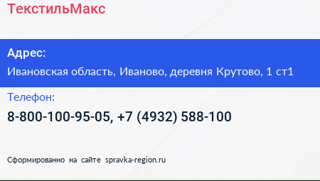 ТекстильМакс по адресу Ивановская область, Иваново, деревня Крутово, 1 ст1 в дальнейшем Организация, размещена в следующих категориях: