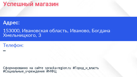 Успешный, магазин по адресу 153000, Ивановская область, Иваново, Богдана Хмельницкого, 3 в дальнейшем Организация, размещена в следующих категориях: