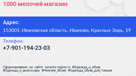 1000 мелочей, магазин по адресу 153003, Ивановская область, Иваново, Красных Зорь, 19 в дальнейшем Организация, размещена в следующих категориях: