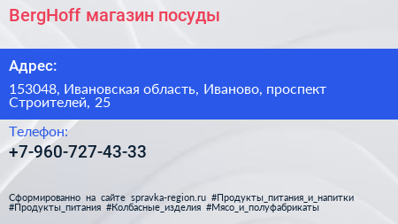 BergHoff, магазин посуды по адресу 153048, Ивановская область, Иваново, проспект Строителей, 25 в дальнейшем Организация, размещена в следующих категориях: