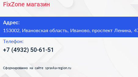 FixZonе, магазин по адресу 153002, Ивановская область, Иваново, проспект Ленина, 47 в дальнейшем Организация, размещена в следующих категориях: