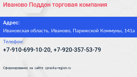Иваново Поддон, торговая компания по адресу Ивановская область, Иваново, Парижской Коммуны, 141а в дальнейшем Организация, размещена в следующих категориях: