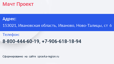 Мачт-Проект по адресу 153021, Ивановская область, Иваново, Ново-Талицы, ст 6 в дальнейшем Организация, размещена в следующих категориях: