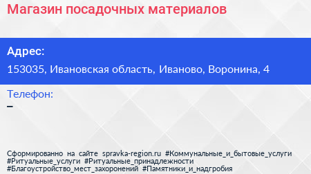 Магазин посадочных материалов по адресу 153035, Ивановская область, Иваново, Воронина, 4 в дальнейшем Организация, размещена в следующих категориях: